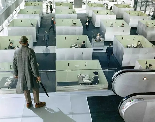 電影《玩樂(lè)時(shí)間》中的鏡頭,壓抑封閉的辦公空間曾被認(rèn)為是限制創(chuàng)造力的原因