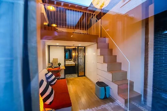 “共享際”是一座原理有點(diǎn)類似青年公寓的共享租房空間,圖為位于前門的打磨場(chǎng)共享際,每間住房為上下兩層的LOFT空間