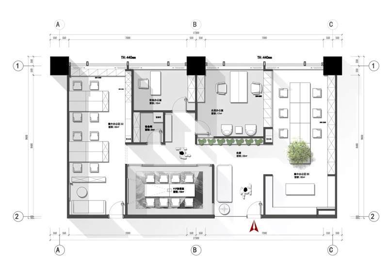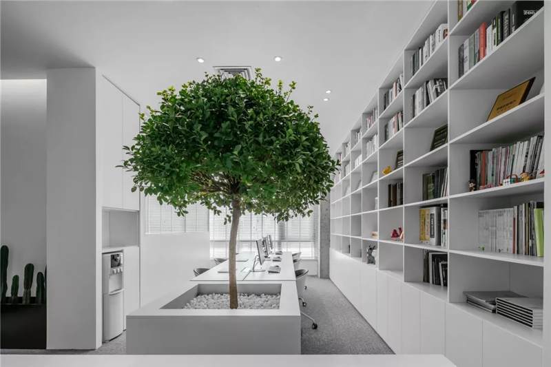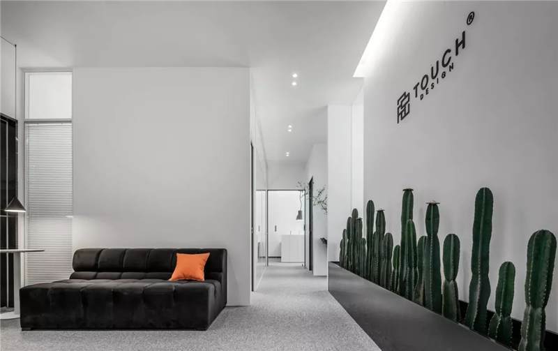 刪繁就簡(jiǎn),以最經(jīng)典的白色為主題搭配色調(diào),沒有繁瑣的設(shè)計(jì)和過多的裝飾,減去辦公中的壓抑感。通過將自然純凈的白色與沉靜黑色相結(jié)合,將品牌形象簡(jiǎn)潔地呈現(xiàn)表達(dá),同時(shí)為左右空間的過渡創(chuàng)建和諧觀感。純白的墻面,接近心靈的澄凈;仙人掌是視覺的焦點(diǎn),恣意生長(zhǎng)、堅(jiān)韌、夯實(shí)根基,也正寓意著公司的設(shè)計(jì)理念:有所依、有所仗、有所長(zhǎng)。