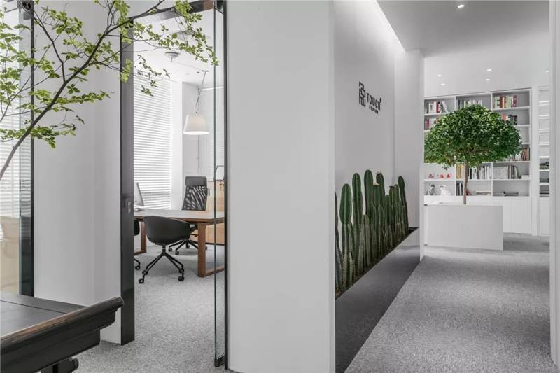 觸覺設(shè)計(jì)巧妙擷取文化于當(dāng)代都會(huì)空間,展現(xiàn)出雅致韻味的同時(shí)留下了更多觸碰的余地。綠植來點(diǎn)亮辦公場(chǎng)所的鮮活生命力,清逸的色彩是思想游龍的軌跡,在留白的空間中伸出觸角,觸覺所及之處,思維綻放遐想。