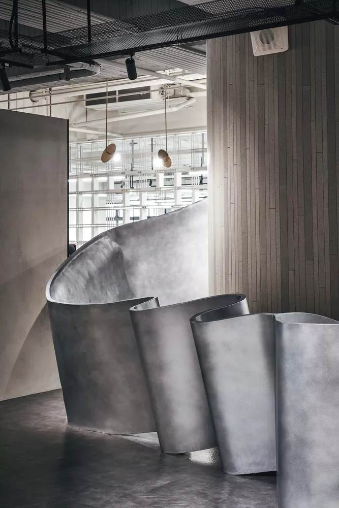 創(chuàng)意是無限,沒有邊界的。是一條線、亦是線聚集轉化而成的曲面。直線,是思考的軌跡。曲面,是每個創(chuàng)作的轉折,線條的動靜之間,串聯(lián)了空間,刻意保留基地原貌的原質肌理,植入了新的設計元素,呈現(xiàn)粗曠和細致的沖突美,來表達品牌精神:前衛(wèi)、年輕、精致、優(yōu)雅。充滿雕塑感的柜臺,佇立于公共空間中充滿風采,勾勒新穎且醒目的企業(yè)形象。