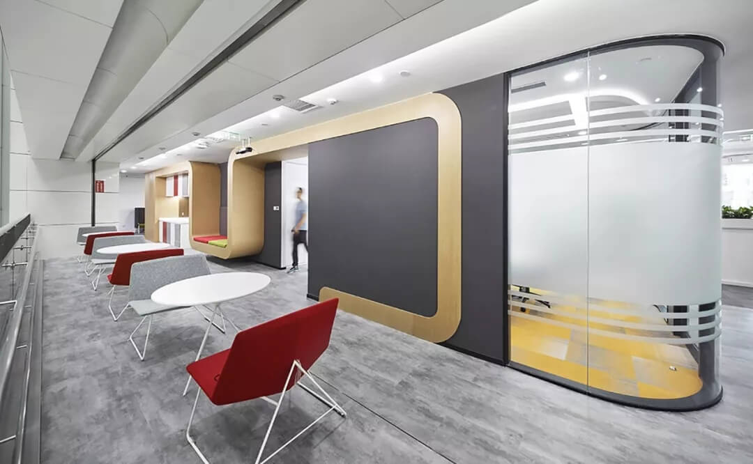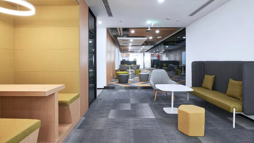 本案標(biāo)準(zhǔn)化辦公區(qū)秉持高效,功能交融,彈性多變的原則,設(shè)置大開(kāi)敞辦公區(qū),多功能培訓(xùn)室,會(huì)議室,經(jīng)理辦公室等空間,聯(lián)結(jié)其他功能配套區(qū)。辦公空間的開(kāi)敞、通透從普遍客觀立場(chǎng)而言是希望帶來(lái)環(huán)境氣氛上的舒適、放松。
