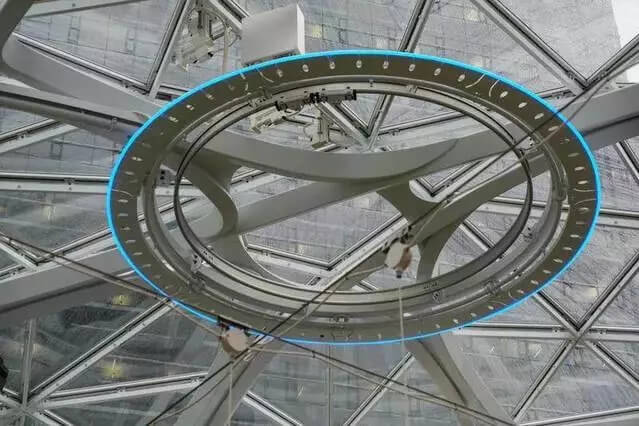 Spheres鳥瞰圖 The Spheres 由三個玻璃球狀建筑物組成,最大的球體高 90 英尺(約 27 米),寬 130 英尺(約 40 米)