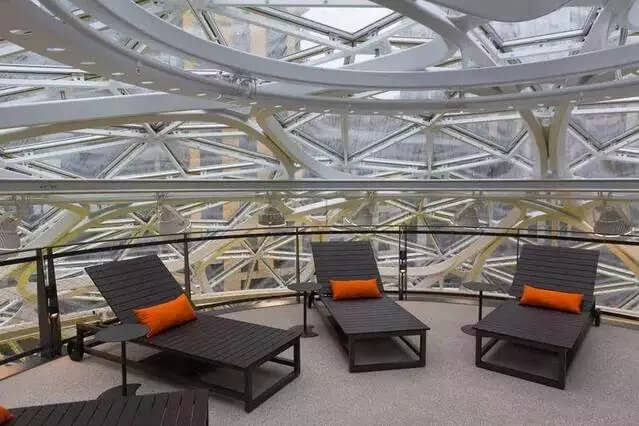 不同類型的開放區(qū)域 亞馬遜全球不動產(chǎn)及設(shè)施副總裁約翰·斯科特勒(John Schoettler)表示, 整座建筑可以同時容納800人。它除了是一個類似公園的空間外,員工們也可以在里面上網(wǎng)充電。
