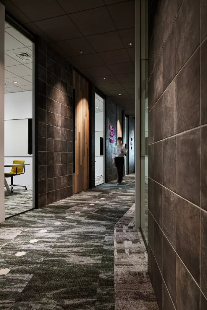 為此,設(shè)計(jì)團(tuán)隊(duì)的目標(biāo)是讓辦公室成為一個(gè)人們隨便可以咨詢房地產(chǎn)相關(guān)資訊的地方。入口處有許多綠植,寬敞的空間看起來(lái)比起居室還要舒服。辦公室配備了帶有防污圖案的框架,復(fù)古吊燈和帶有當(dāng)下流行風(fēng)格的霓虹燈標(biāo)注,徹底改變房地產(chǎn)公司的傳統(tǒng)形象。空間約有3300平方米,擁有20多件會(huì)議室,員工使用的公共空間介于工程師和代理商空曠的工作間之間。