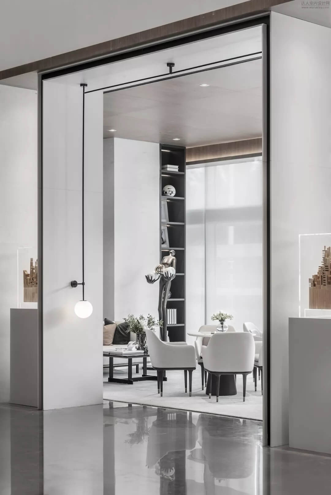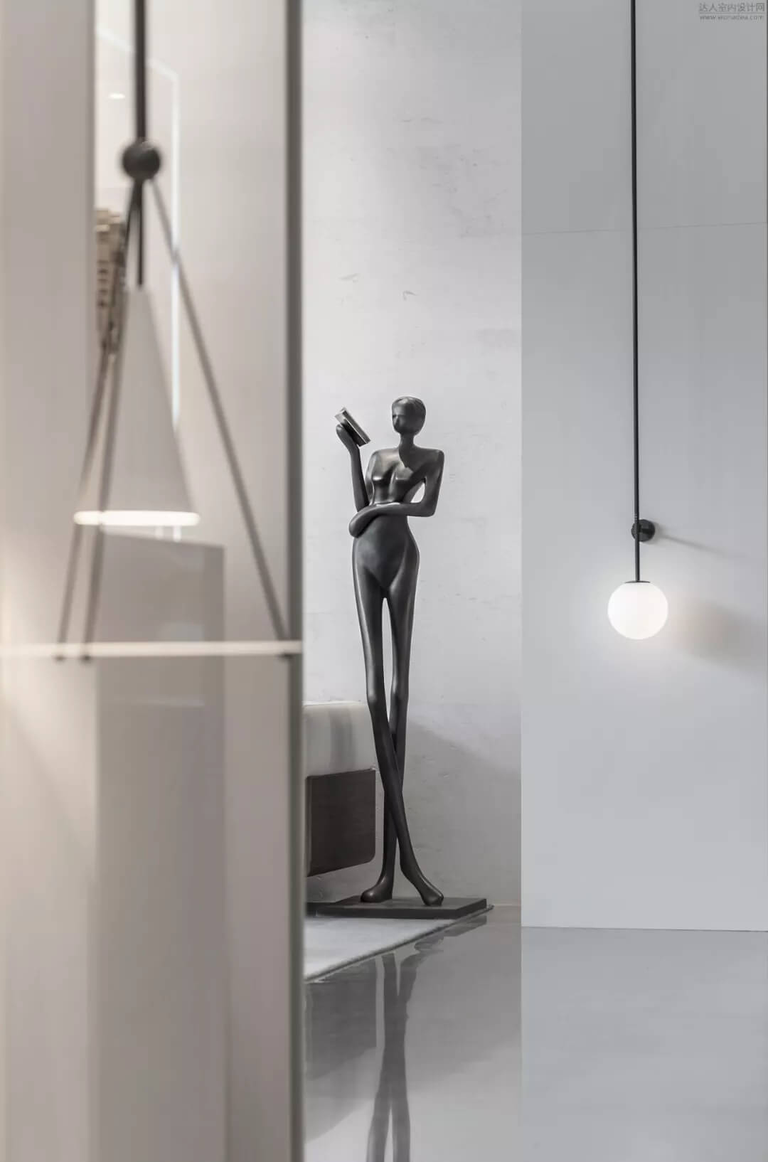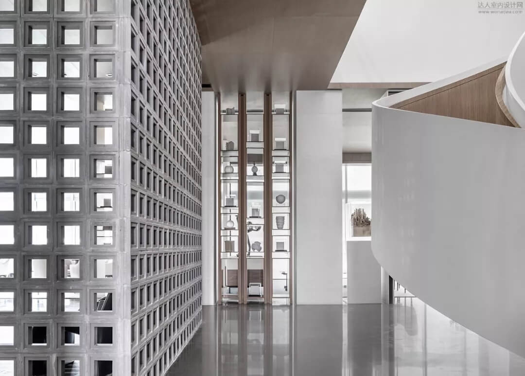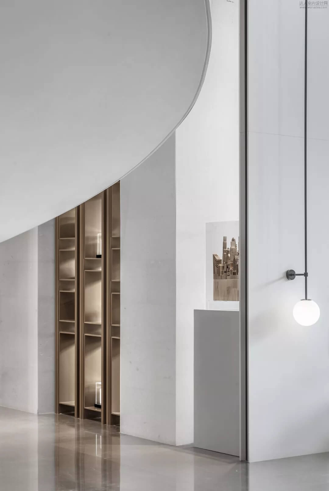 淡雅的白色配以溫馨木色的夢幻般旋轉(zhuǎn)樓梯入口,白色球體與之呼應(yīng),旋轉(zhuǎn)而上,動態(tài)感的景色盡收眼底,格子狀猶如延續(xù)的·星際穿越,感受平衡時空不同維度的交措時光,身處'空間',在無限與有限中穿梭,不經(jīng)意的轉(zhuǎn)角余光是同色的球燈相映,優(yōu)秀的設(shè)計師是會講故事的人。