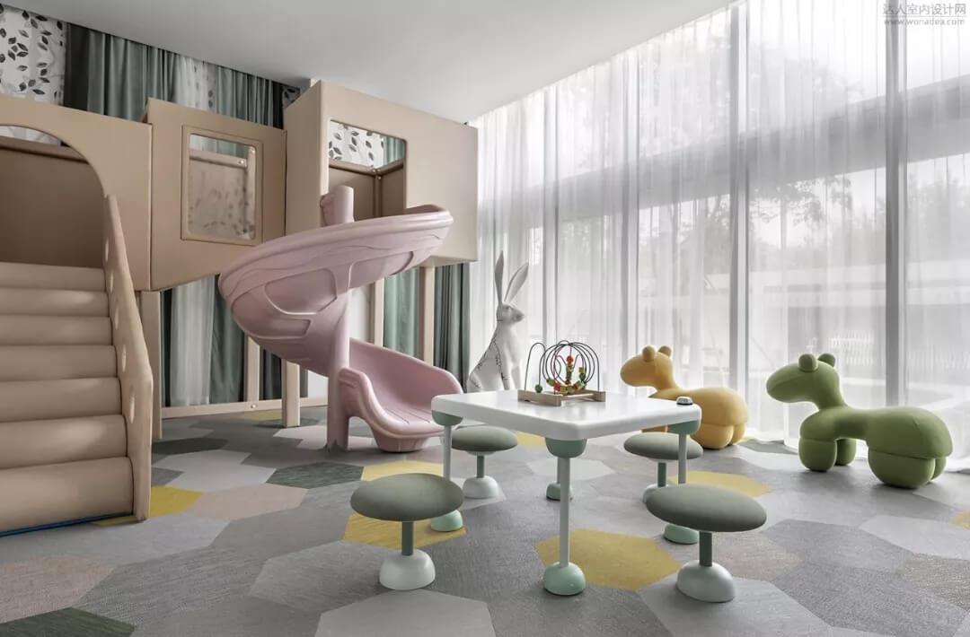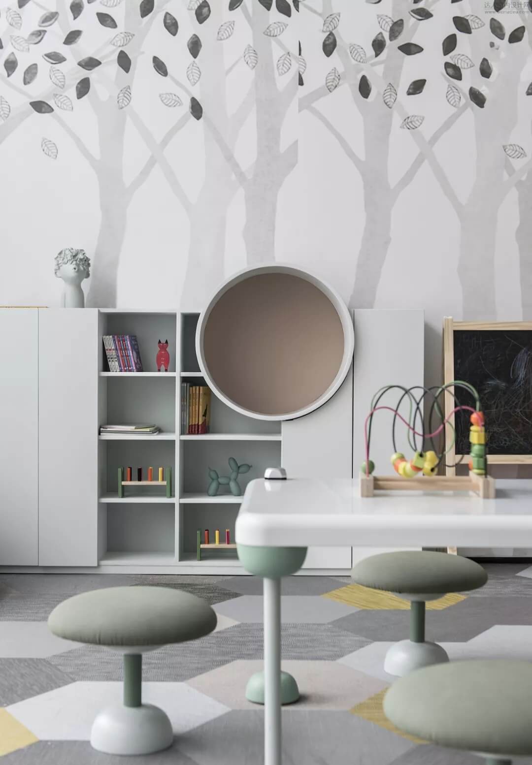 兒童區(qū)曼妙著森林深處的味道,暖暖的顏色彩散發(fā)著與自然 ,生命,和平共處的氣息,玻璃的陽光開放式結(jié)構(gòu),智慧的精靈無處不在,響應(yīng)著空間的靈動氣息。