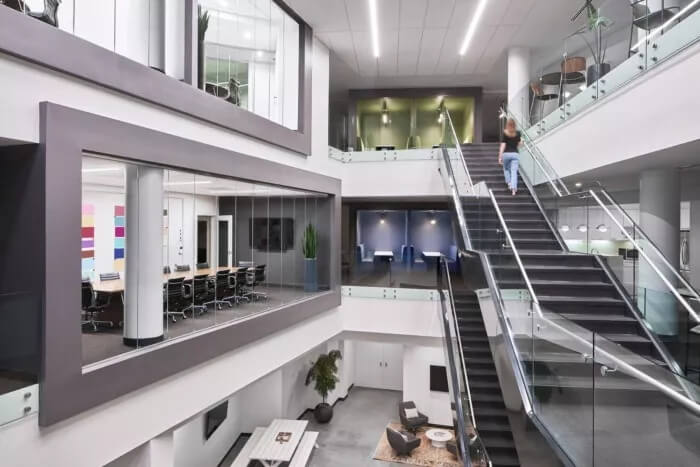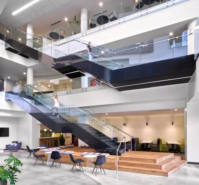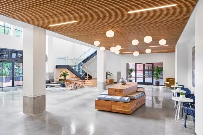 在整體美觀方面,3north剝離了裝飾性金屬制品,并將空間恢復(fù)為天然材料,干凈的線條和充足的自然光線。螺旋樓梯(一直是瓶頸交通的源頭)被拆除并簡化了形式和材料調(diào)色板。拋光混凝土地板和裸露的天花板為經(jīng)典,現(xiàn)代設(shè)計(jì)做出了貢獻(xiàn)。在整個(gè)過程中,該建筑向后退一步,將焦點(diǎn)放在本地藝術(shù)和手工藝上。這是一個(gè)為員工本人打造的空間,無論員工的工作方式,當(dāng)前的心情或聚會(huì)的方式如何,他們都可以高效地工作,而且最重要的是可以激發(fā)靈感。