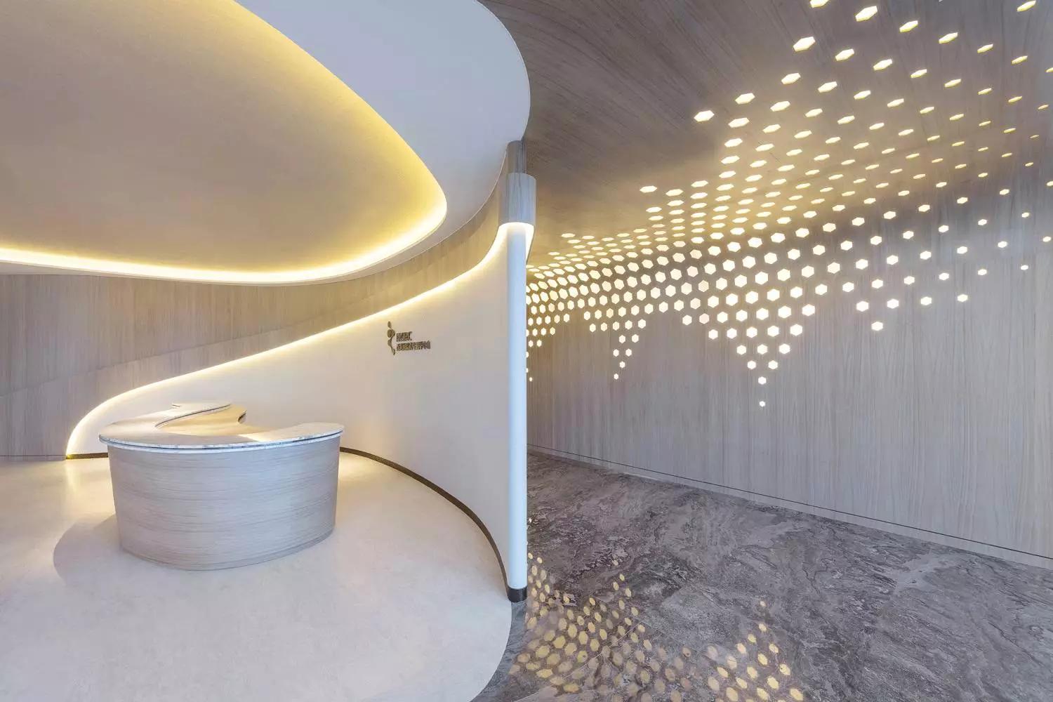 波浪起伏的輪廓舒適宜人,以材質(zhì)和色彩轉(zhuǎn)換空間的調(diào)性,薈萃最恬適的元素塑造循序漸進的氛圍體驗,猶如憩時份花園回廊,緩和心靈才能得以配合各種療程。