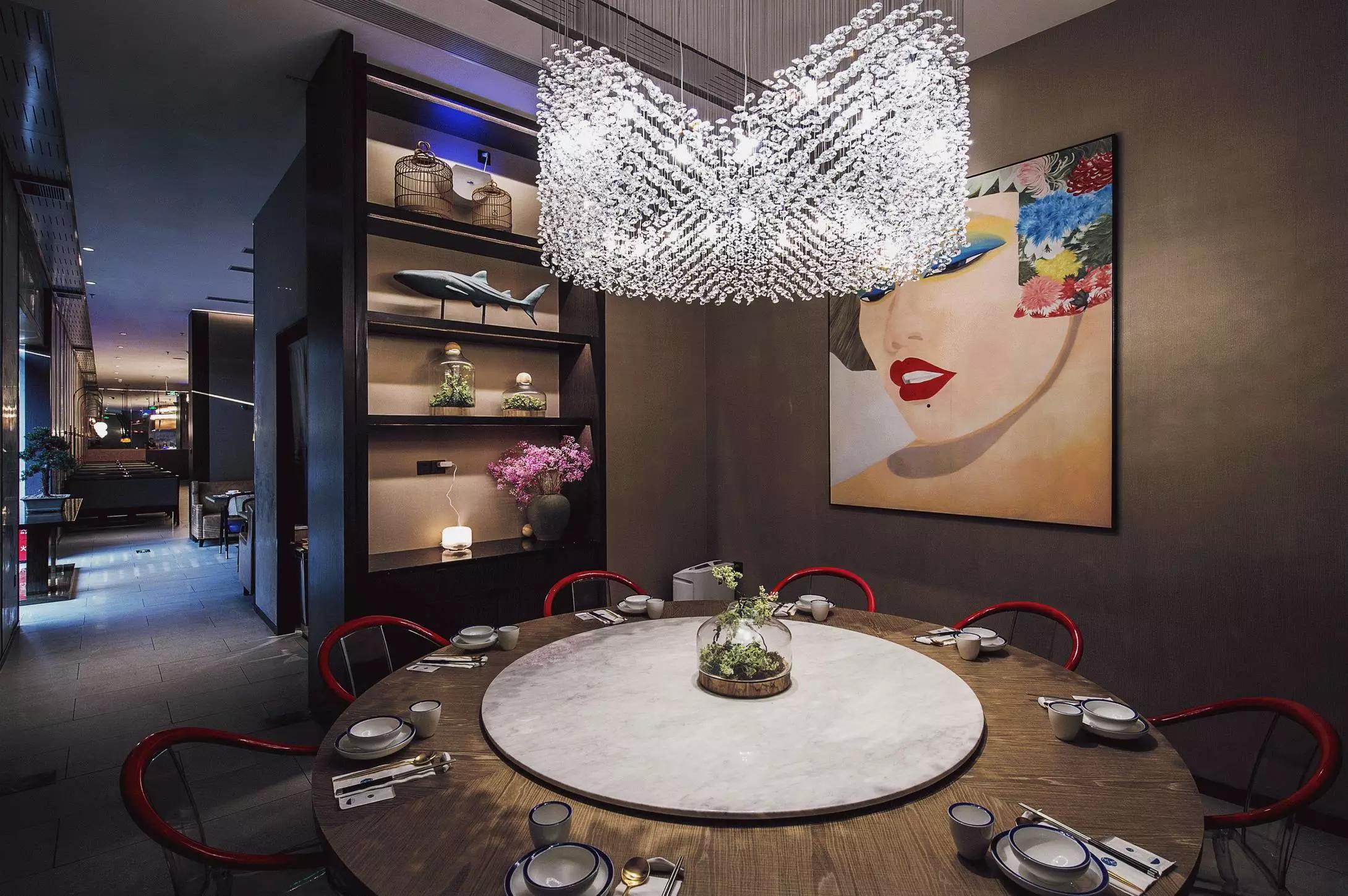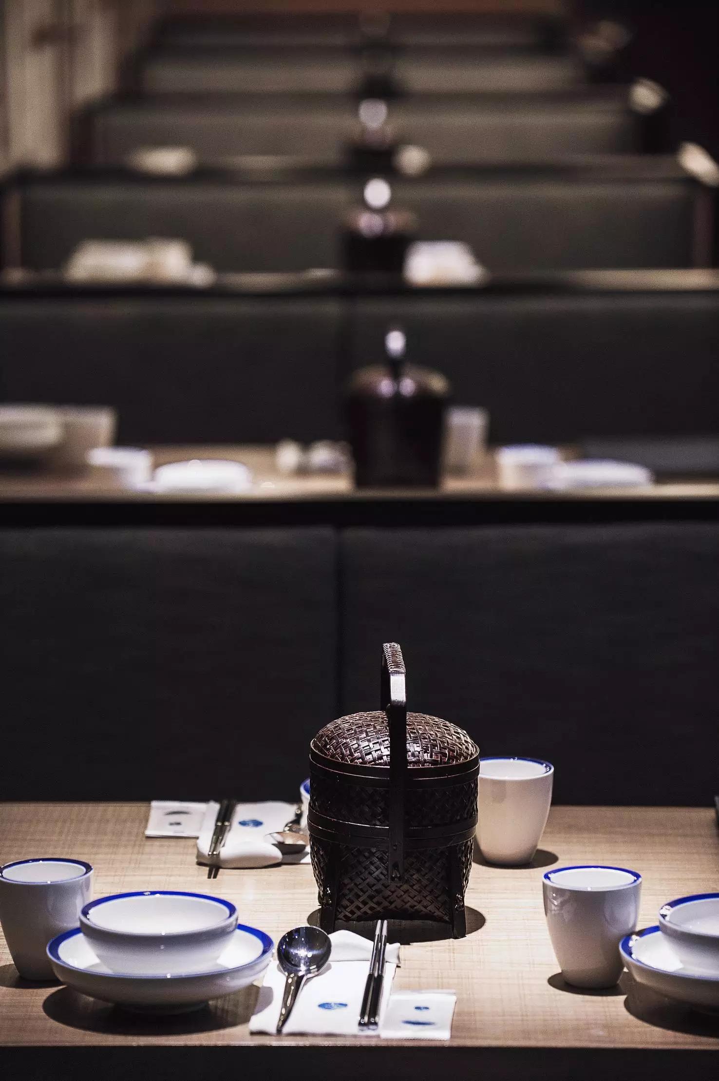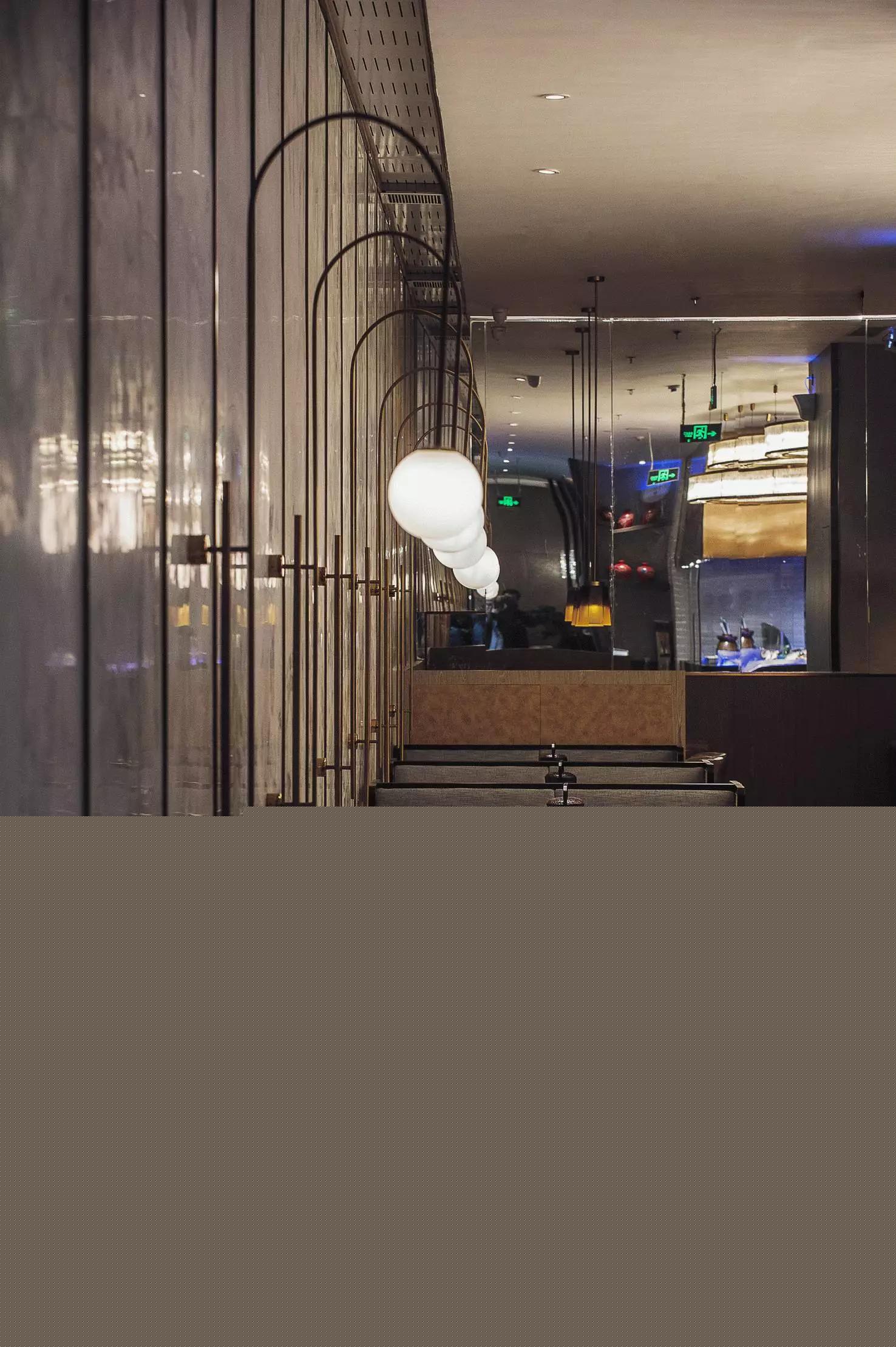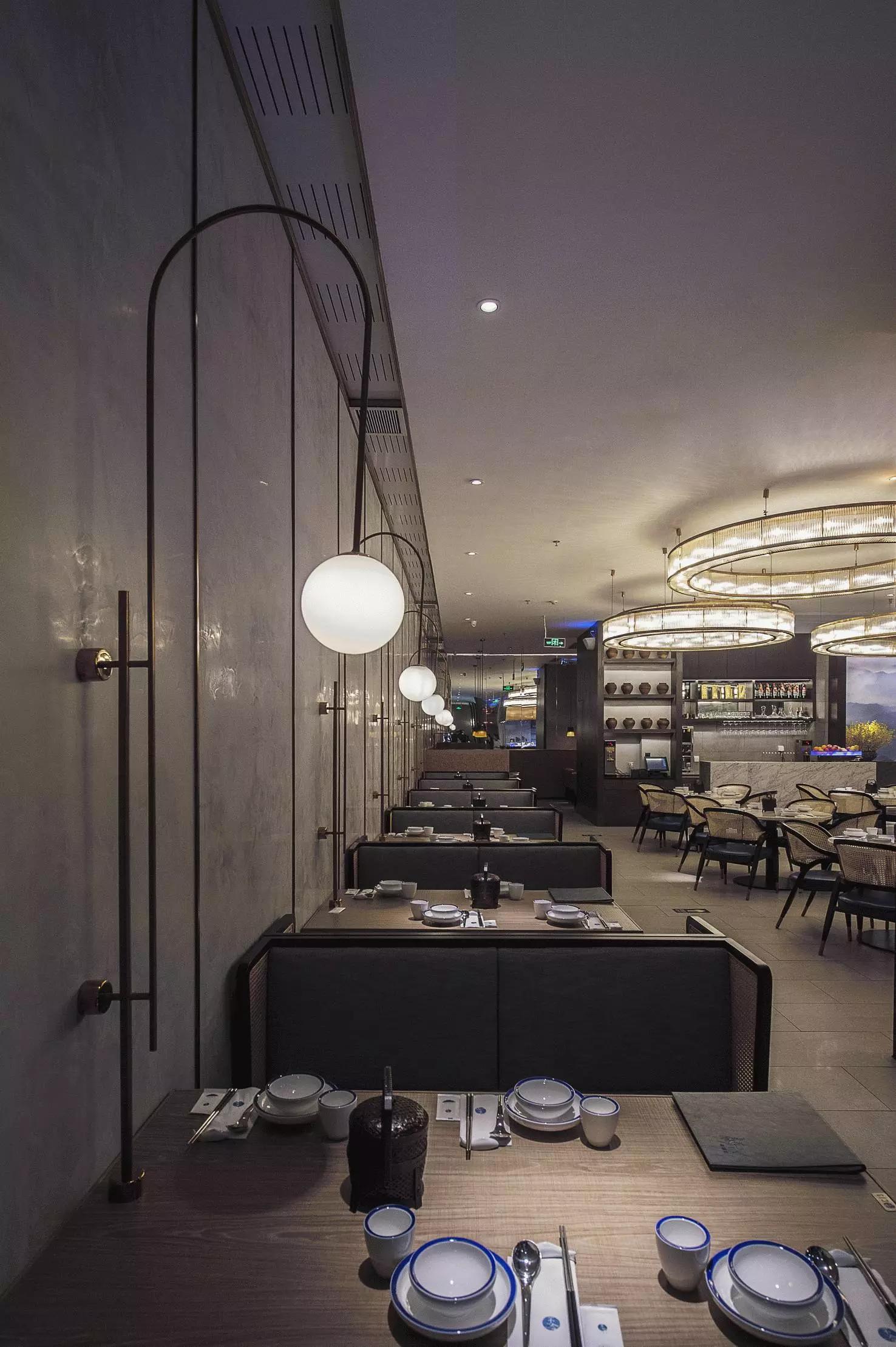用餐區(qū)完全是一個(gè)開放的空間,沒有很多的隔斷,圓桌和方桌有序排布,既充分利用了空間又避免了單調(diào),結(jié)合燈具的設(shè)計(jì),就像在老家庭院里的大家庭聚餐——夜晚,歸來的親人們,在清涼的月色中,你來我往,和和樂樂,傳遞此間。