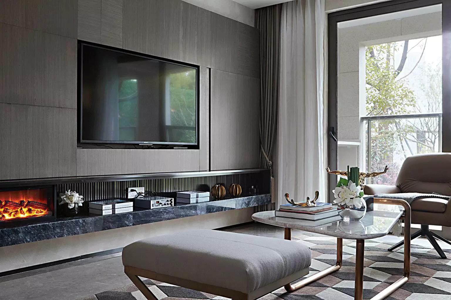 在高級(jí)灰的主調(diào)下,任憑灰藍(lán)、灰咖、米灰自由穿梭。金屬與大理石外表下的冷酷質(zhì)感、紡織布藝的溫柔親膚與皮革制品帶有的手工溫度,交纏錯(cuò)綜,剛?cè)嵯酀?jì)。定制壁爐與優(yōu)雅的Minotti沙發(fā),隱約顯露出居所主人優(yōu)越的品味。